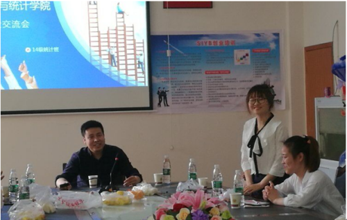 本网讯(通讯员刘雨田)为进一步提高我院2014级学生的考研热情,明确考研目标,掌握相关考研技巧,同时为准备就业的同学提供就业经验,分享找工作过程中应当注意的事项,2017年5月5日下午三点,14统计班特于太阳成集团tyc151cc院会议室举行2017届考研工作经验分享会。本次分享会邀请了考研成绩优异且备考经验丰富的学长学姐:胡利超(武汉大学)、文怡方(厦门大学)、张琼枝(湘潭大学)、 蔡丰泽(深圳大学),另外还邀请了李金虎(湖北国网华中科技开发有限公司)和刘灿畅(中国联通衡阳分公司)两位学长为同学们分享就业经验以及职场中的注意事项。本次分享会由14统计班主任陈望学老师主持。