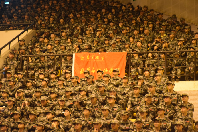 最后,我校新生全体起立,齐唱《中国人民解放军军歌》。齐头迈进的数千名新生脸上充满了斗志昂扬,他们出色的表现,为10天的军训生活画上了圆满的句号,也为即将开启的大学新生活拉开了序幕。