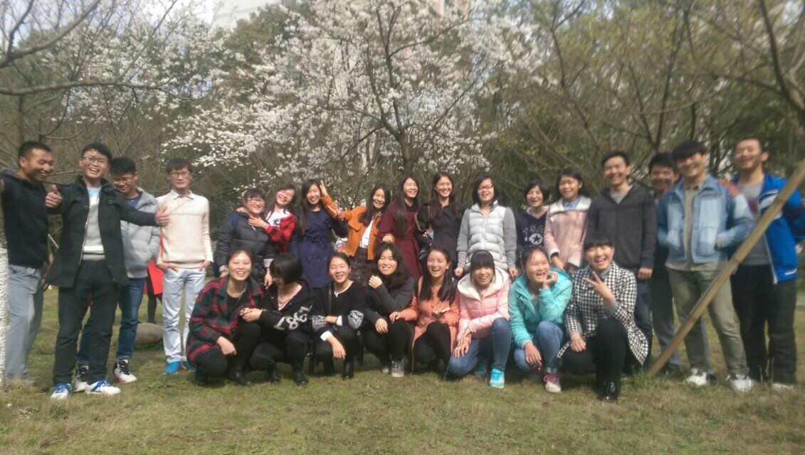 图为14统计班同学樱花园合影