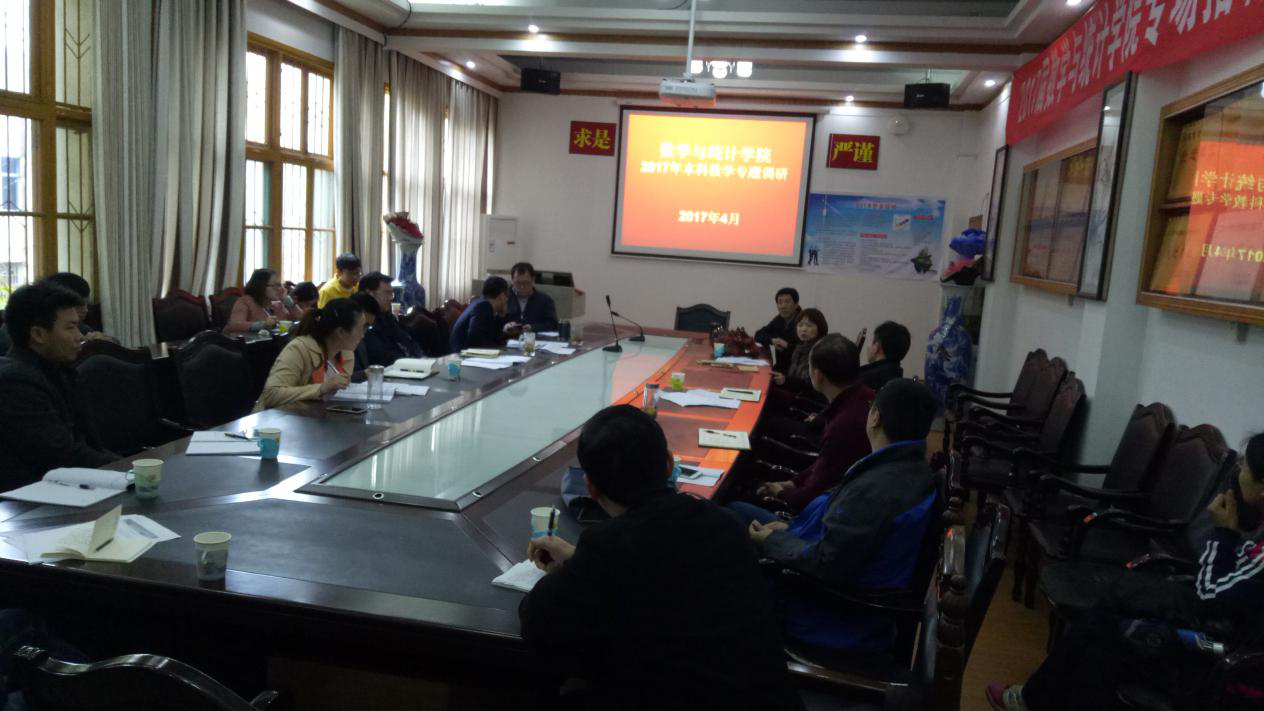 本网讯(通讯员颜超) 为推动教学方式的改革,促进教学水平的提高。我院于2017年4月11日下午2:30在院会议室举行太阳成集团tyc151cc2017年本科教学专题调研会议。参加此次会议的人员有张家界校区教科办主任、教务处副处长李爱华,院党委书记戴军,院长方东辉,副院长莫宏敏,部分老师代表和学生代表。