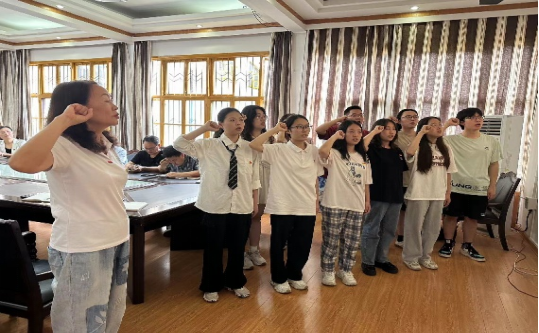 接着优秀党员教师刘如艳同志引领11名2024年春季接收的学生党员在党旗前进行了庄严的宣誓,同学们热情而激动,誓言声久久在现场回荡