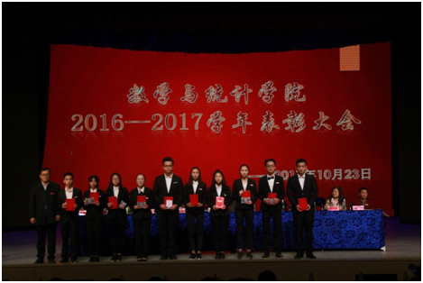 2017年10月23日晚,我院在音舞演奏厅成功举行了2016-2017年表彰大会。院党委书记戴军,院长方东辉,副院长莫宏敏、欧祖军,院党委副书记吴利华,院工会主席贺乐平,高等数学教研室主任刘如艳,金融工程系主任张勇,信息与计算科学系主任谢景力以及各年级全体班主任老师和全院学生参加此次表彰大会。