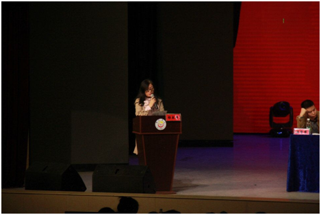此次会议由彭立平主持,大会在庄严肃穆的国歌声中拉开帷幕。吴利华从院党建工作、团学工作、学风建设、学院文化活动及学生就业工作五个方面进行工作总结。她提到,我院去年工作各个方面都取得重大成果,在新的一年里希望大家继续努力,再创辉煌。