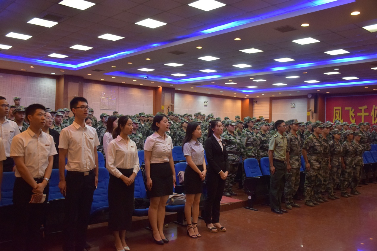 而后,伴随着校歌的旋律,老生为新生佩戴校徽。杨棽、邓娟分别作为新老生代表发言,他们讲到,在大学阶段,应该发挥自身独有的魅力,选择自己感兴趣的领域,不断突破自己,挑战自己。张勇作为教师代表结合自身吉首大学求学工作经验,向大家提出三点期望:第一,尽快转变角色,适应大学生活;第二,及早做好大学计划,并为之努力拼搏;第三,注重实践,在实践中锻炼自己。戴军为17级各班班主任颁发聘书,聘书之间的传递,传递的是一份师生情,传递的是一份责任。方东辉为新生班授班旗,各班学生代表接过班旗后,潇洒挥舞班旗,方东辉表示,希望各班像这班旗一样热情洋溢,充满活力。吴利华为军训教官颁发聘书,这不仅仅是一份聘书,更是一份荣誉,一份担当。