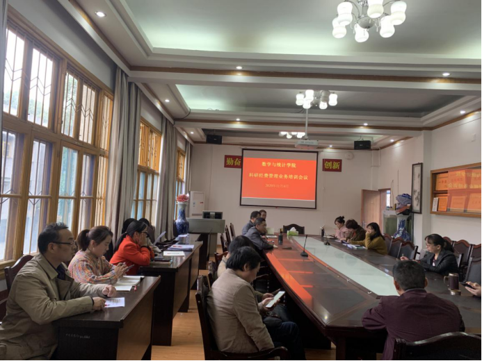 副院长欧祖军介绍了此次培训会议的背景、目的,重点传达了吉首大学科研经费管理业务培训会议的要求和精神,并结合社会科学处科技处、财务处等部门提供的会议资料分别对科研经费管理最新政策精神、科研经费性质分类、科研经费预算编报与调整、科研经费规范报账流程和要求进行了讲解。