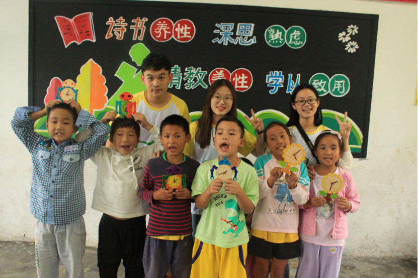 志愿队员表示每每想到队员们共同奋斗的时光和孩子们开心的面庞,都感觉这一切的努力是值得的。许多小朋友也表示通过这一次的课程学习对,珍惜时间有了进一步的思考,DIY时钟是一次非常有趣又生动的课程,有了巨大的收获。在课余时间,经过了最初的相遇,后来一起上课,一起玩游戏,孩子们已经和志愿者十分的熟络了,满脸笑容地和志愿者分享自己的小故事。开心的氛围似乎透过照片染上了我们的心头,让人情不自禁地笑出声来。孩子们的天真无邪快乐感染了志愿者,热情善良温暖着志愿者的心一身疲惫也在欢笑中悄然散去。