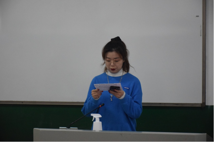会议伊始,张毓芯首先祝贺大家进入团委学生会这个大家庭并介绍出场的各位老师。之后,由团副候选人于朝凤同学介绍本届团委学生会的基本结构。